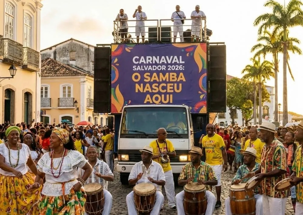 Reconhecido como Patrimônio Cultural Imaterial da Humanidade e com origem no Recôncavo Baiano, o samba será o eixo central do Carnaval de Salvador em 2026. Com o tema “O Samba Nasceu Aqui”, a festa dá destaque à Bahia como berço de um dos ritmos mais emblemáticos da música brasileira e marca os 110 anos do primeiro registro oficial do gênero, a canção “Pelo Telefone”, de Donga e Mauro de Almeida.