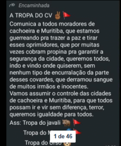 O temor afetou diretamente a rotina da comunidade acadêmica. A Classe Estudantil Organizada do Centro de Artes, Humanidades e Letras (CAHL) da Universidade Federal do Recôncavo da Bahia (UFRB), em Cachoeira, suspendeu as atividades entre os dias 1º e 3 de outubro. Em comunicado, o grupo destacou que “o conflito não se limita a um dos municípios, envolvendo facções rivais que operam em ambos os lados da ponte, ameaçando o livre deslocamento de quem vive, estuda e trabalha na região”.